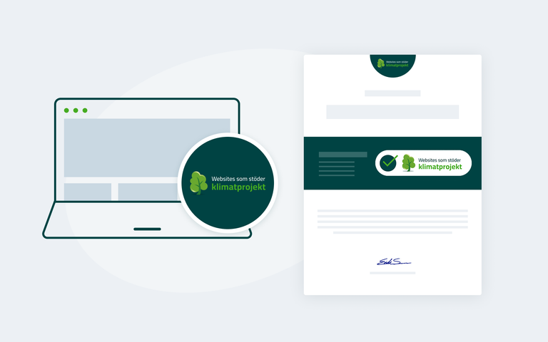 Alla deltagare får använda den välkända gröna ikonen på sin webbplats. När besökare klickar på ikonen öppnas företagets individuella certifikatsida. Där framgår det tydligt att företaget är en del av initiativet och kontinuerligt stöttar klimatprojekt. Ikonen och certifikatet får endast användas av verifierade deltagare.